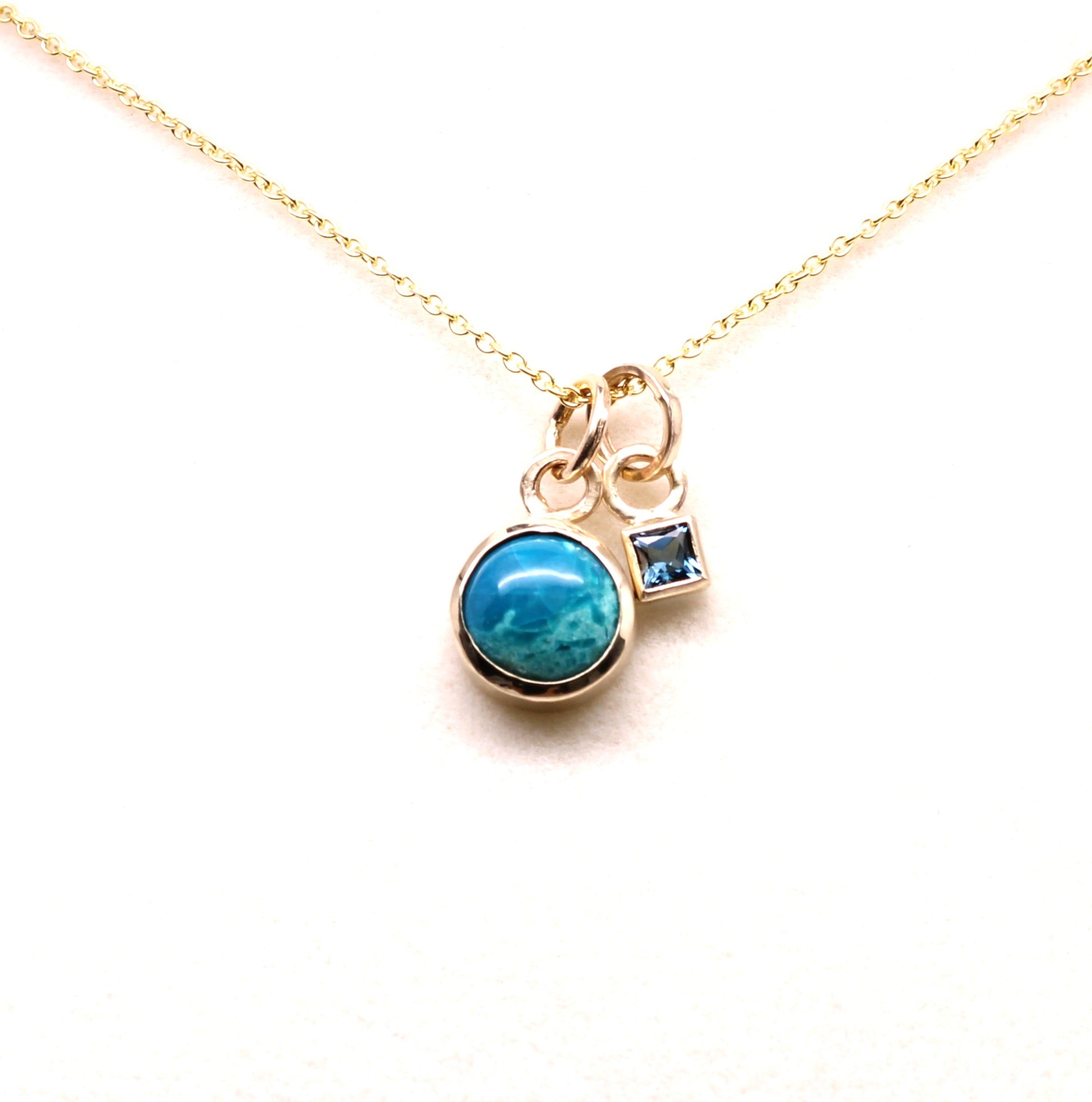 14K Solid Gold Chrysocolla Necklace/ Birthstone Accent/Optional Gold Chain